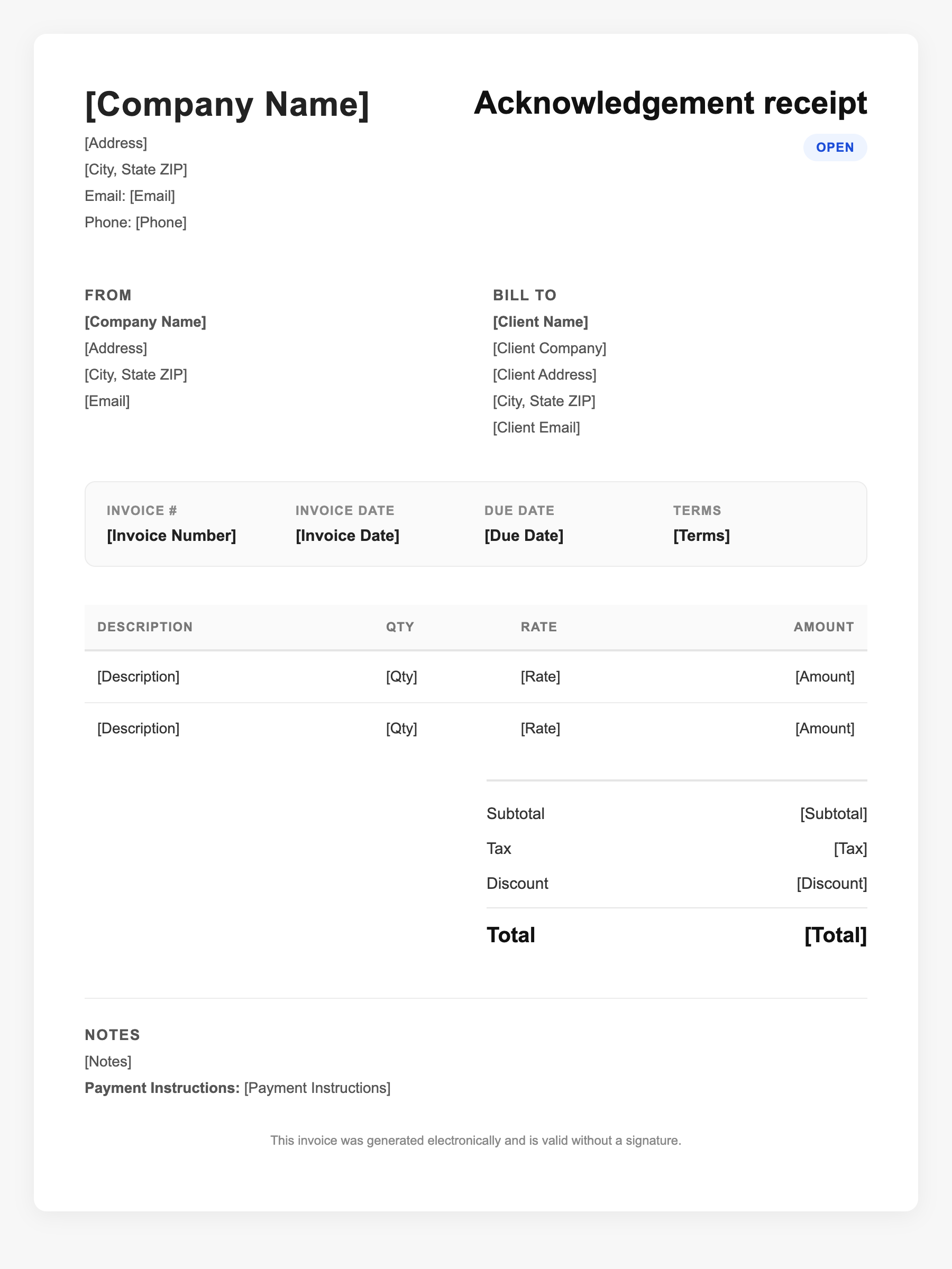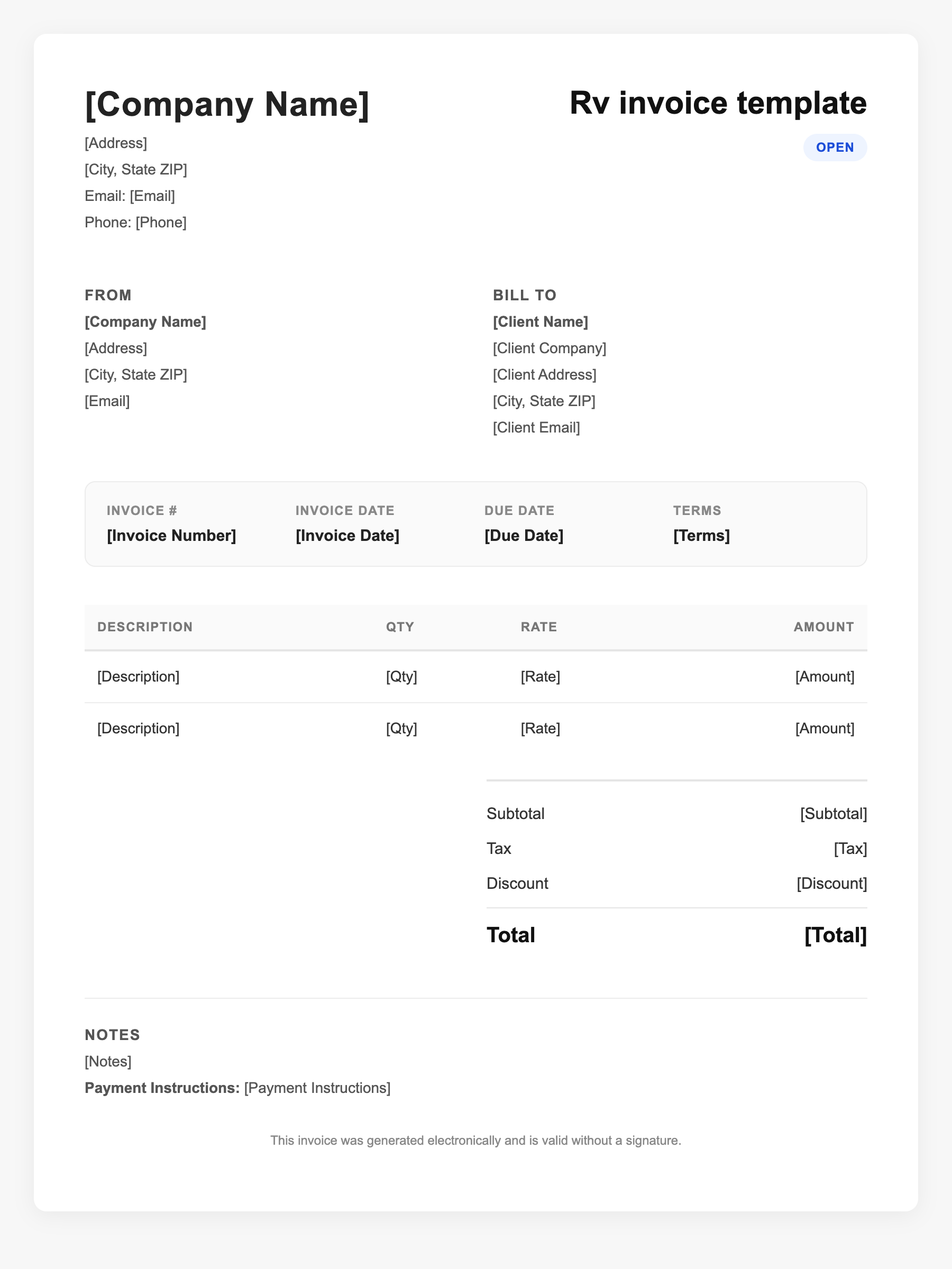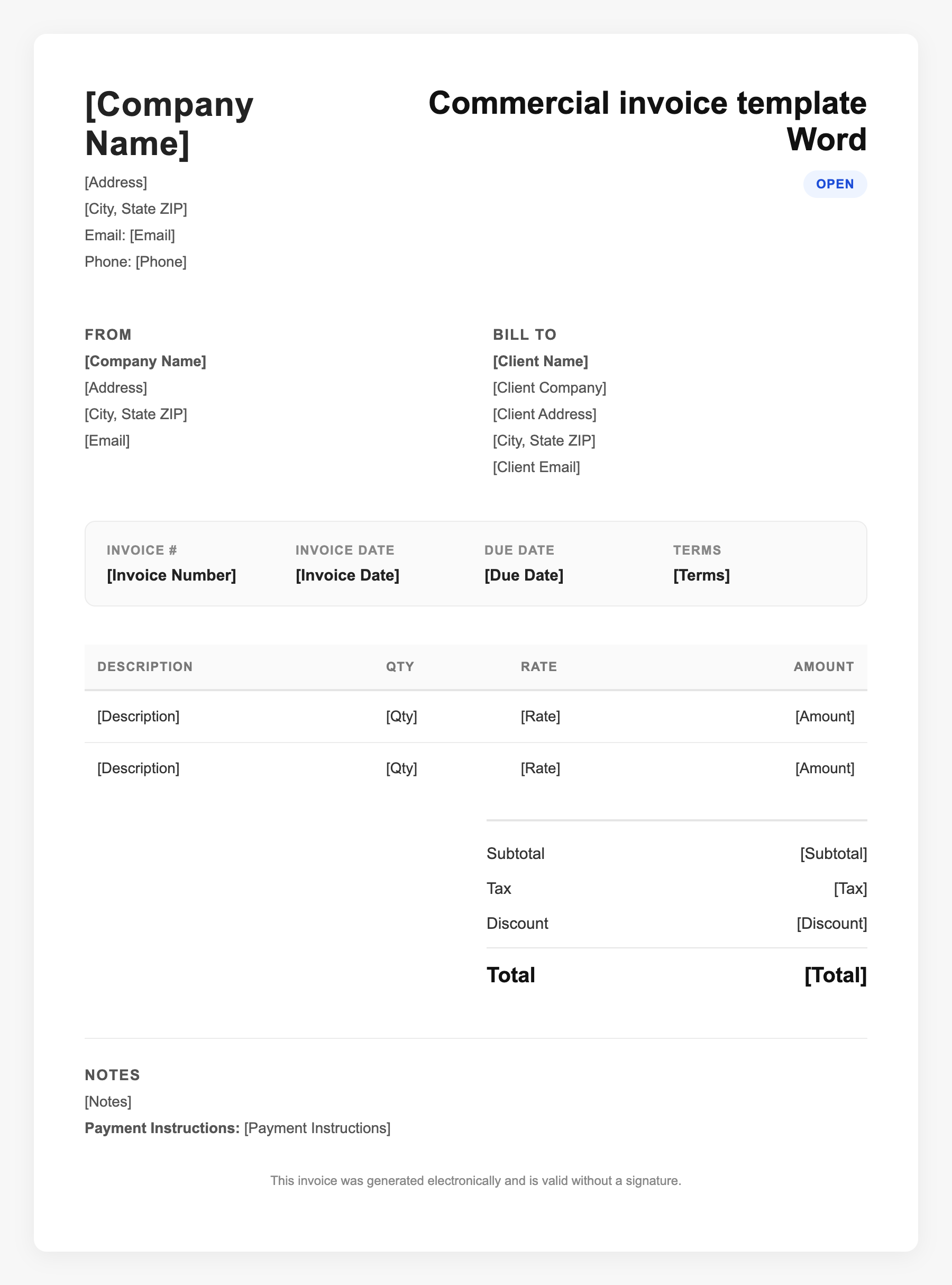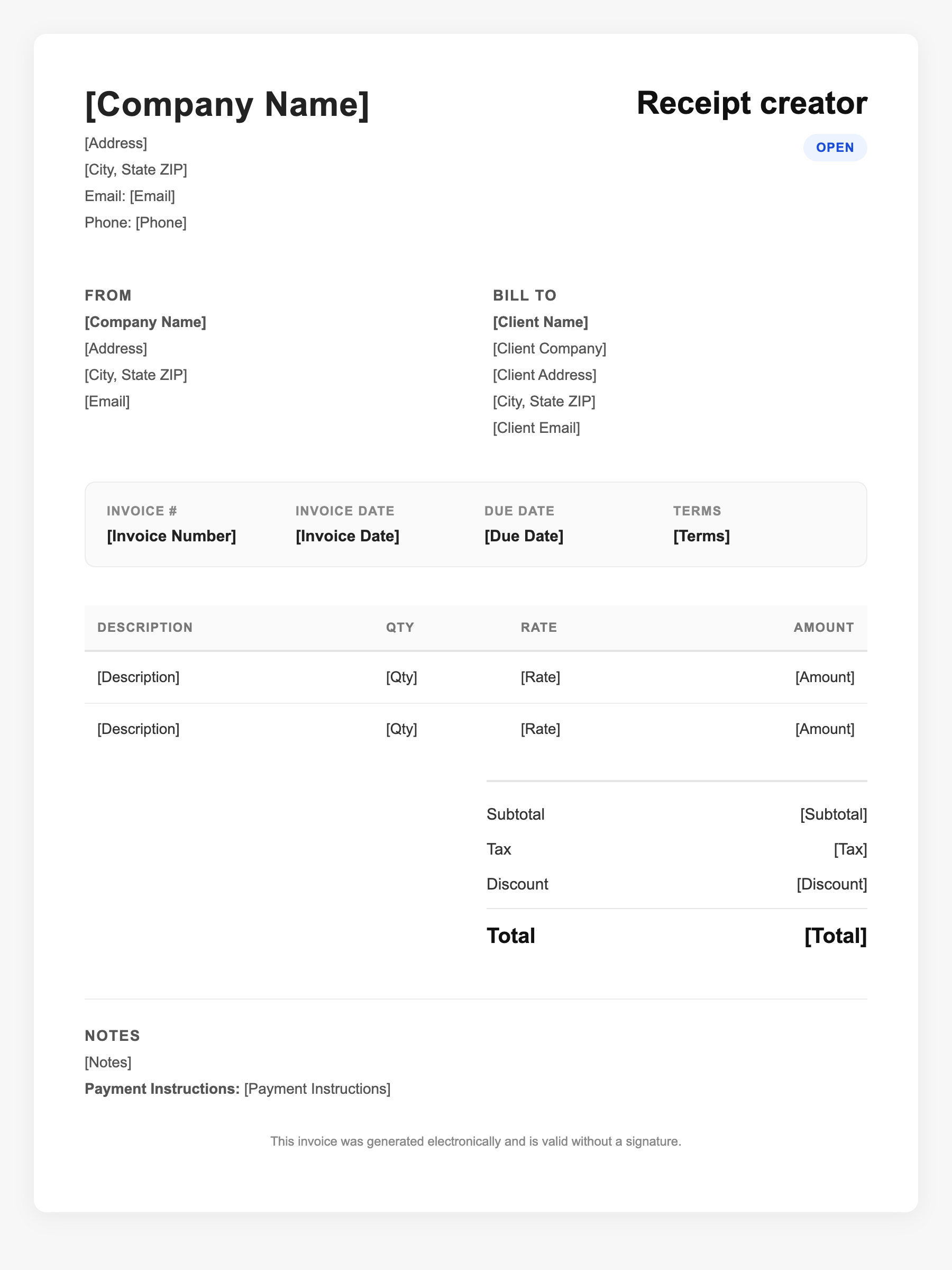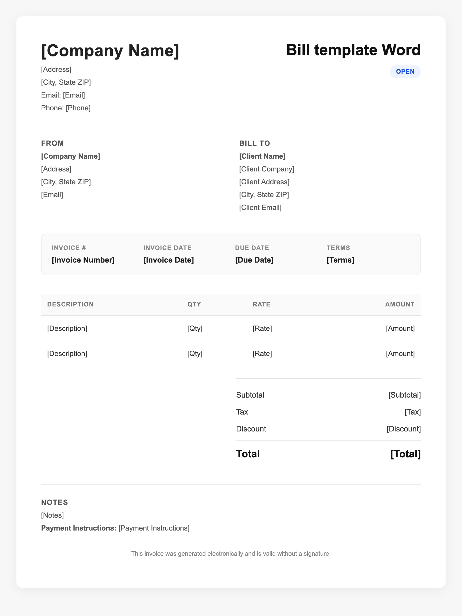 Free invoice templates for Word, Excel, and PDF. Download or use our online invoice builder.