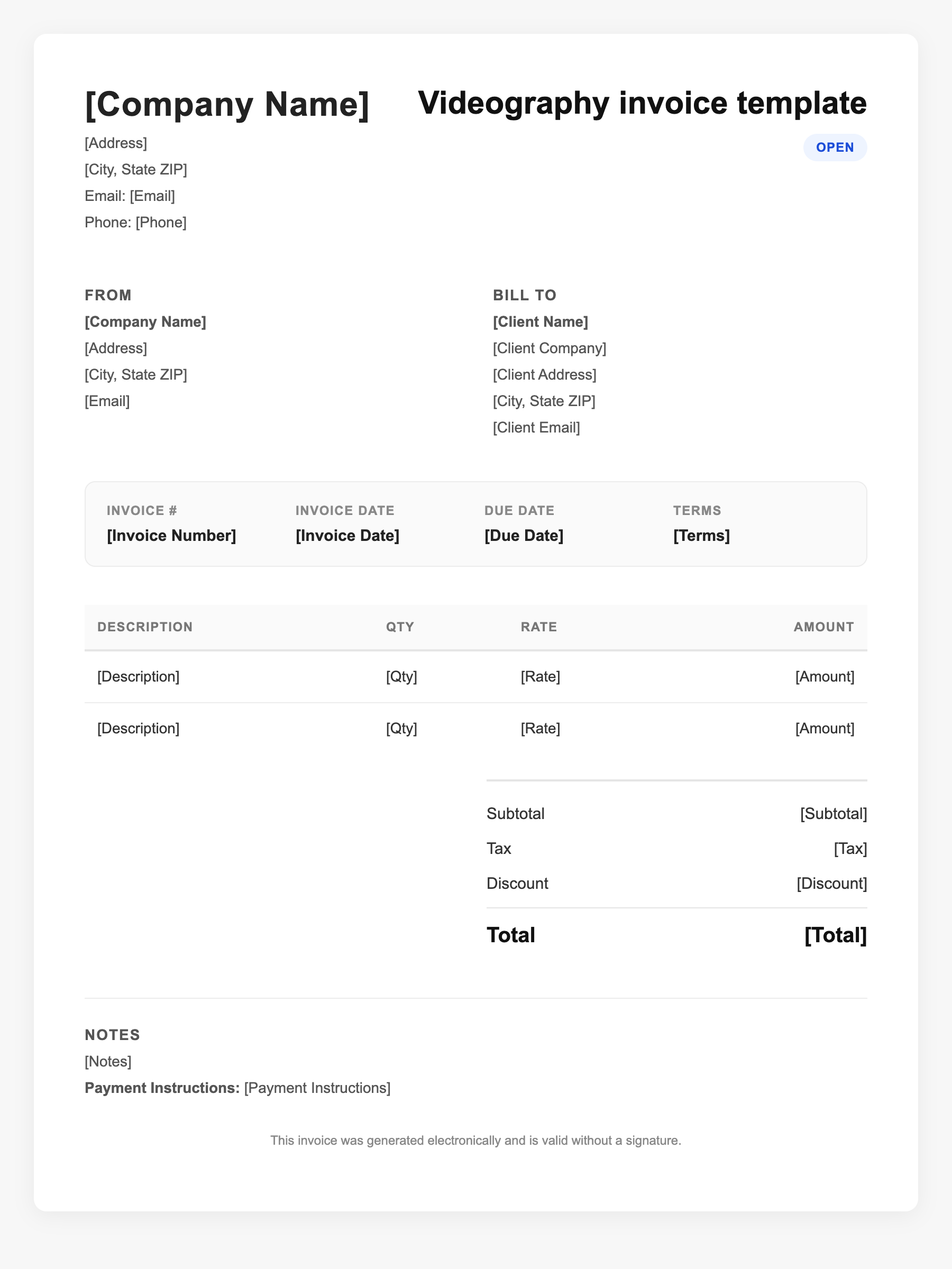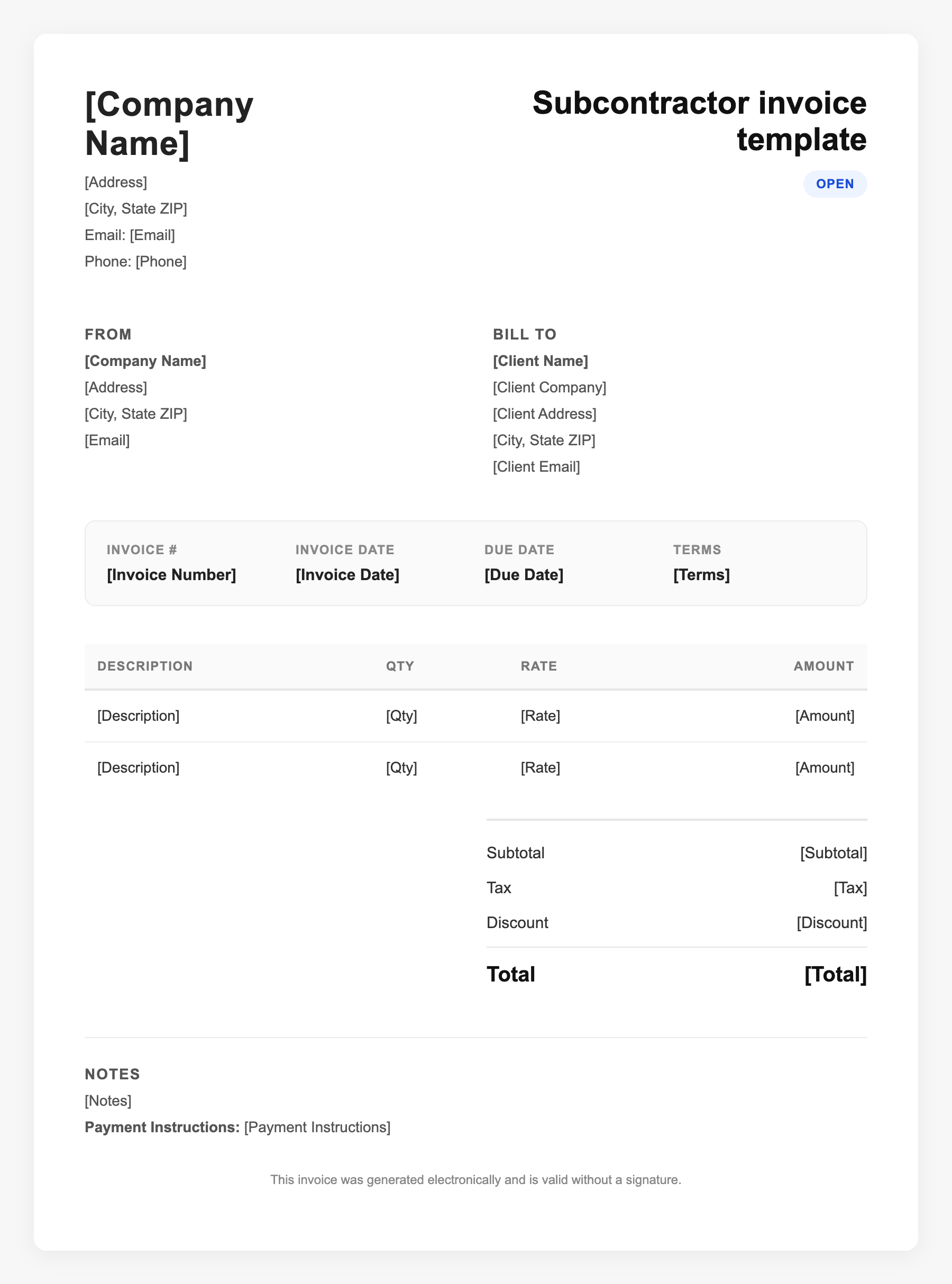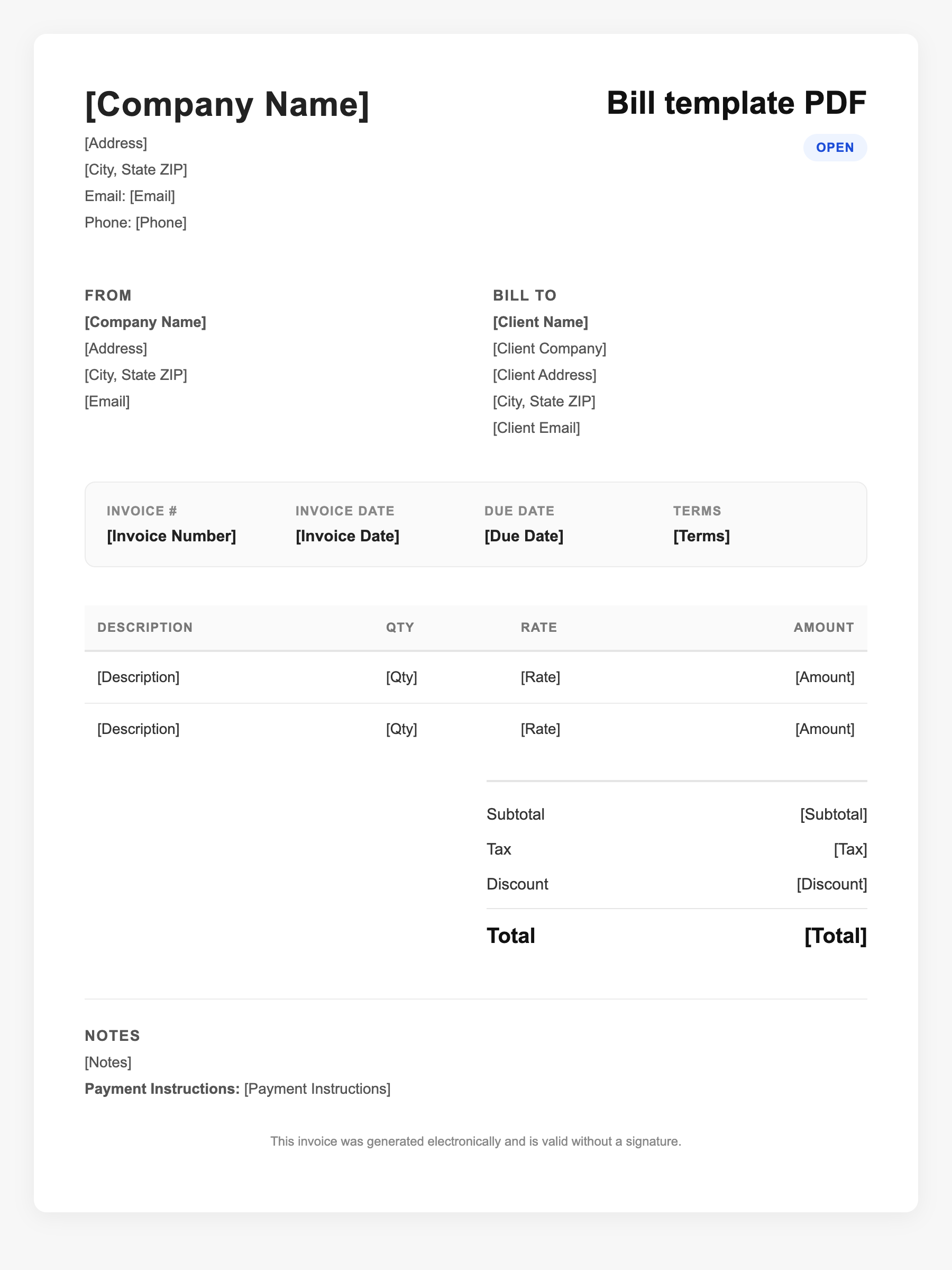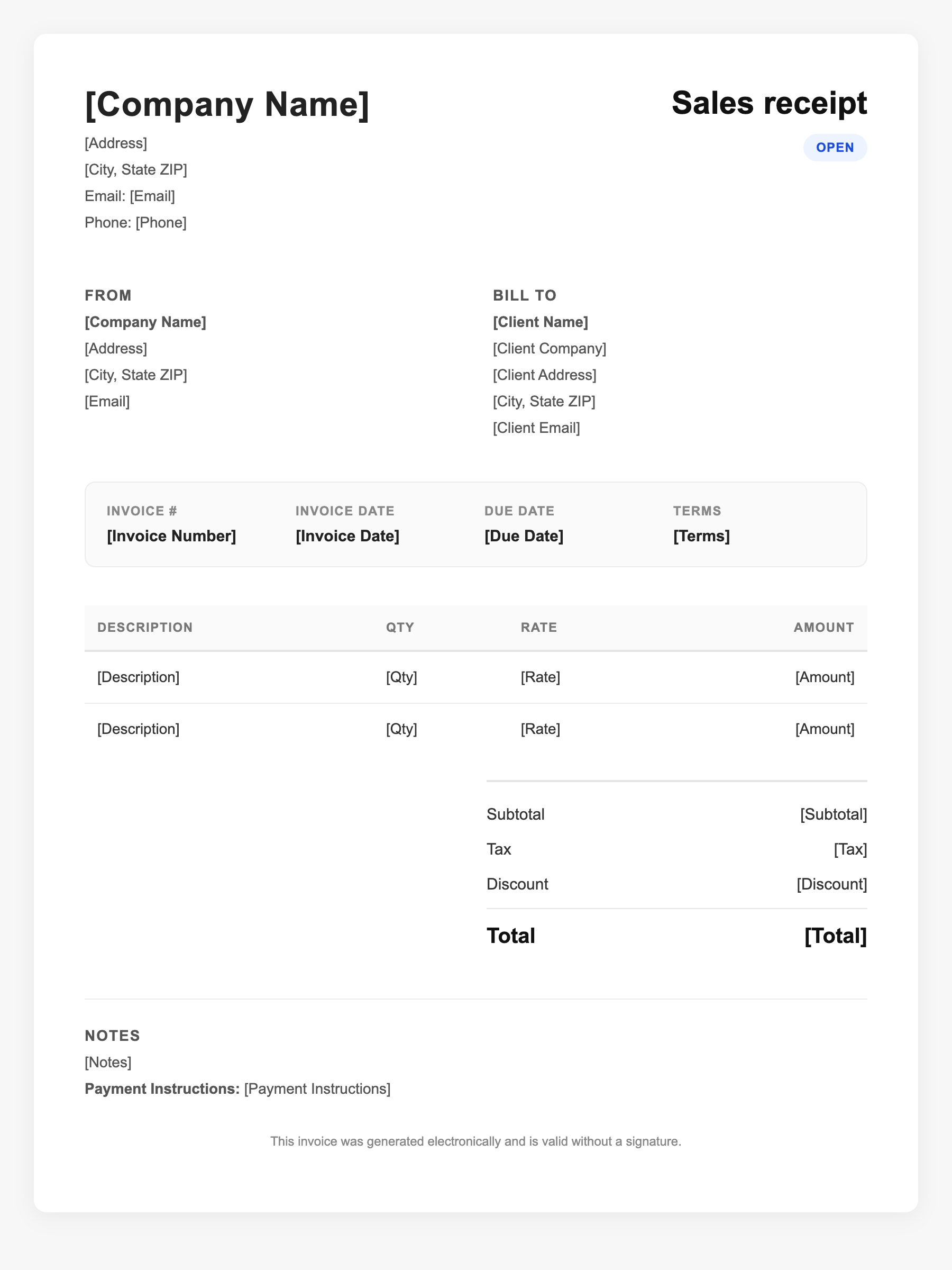 Free invoice templates for Word, Excel, and PDF. Download or use our online invoice builder.